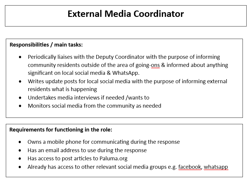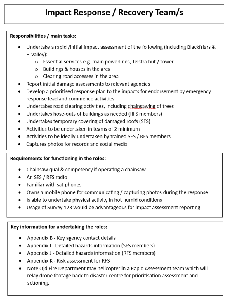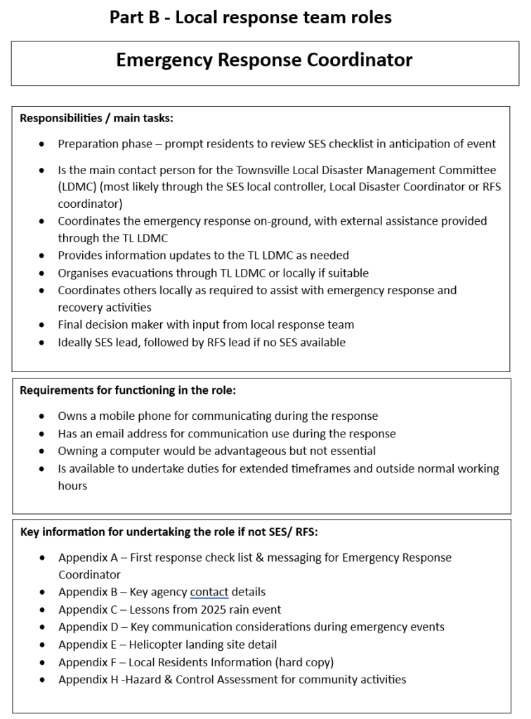 Part B – Descriptions of local response team roles and associated responsibilities. Individuals can take on more than one role.